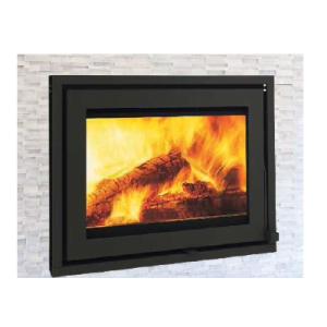 It comes with the latest clean burn technology, efficient burn control and secondary combustion. There is an air wash glass cleaning system which keeps the glass soot free and a removable, pull-out ash pan for an easy clean. It has a cast iron grate, a top flue exit and there is a 4-sided frame. The combustion chamber is lined with vermiculite firebrick, and it comfortably loads 40cm logs.